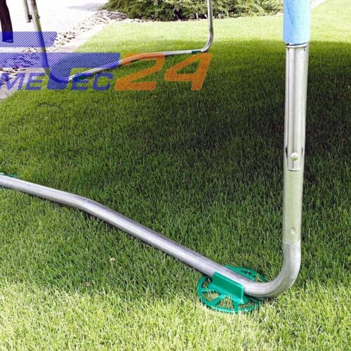 - Schont durch eine gleichmäßige Lastverteilung über die Streben des Trampolinfußes die darunterliegende Grünfläche